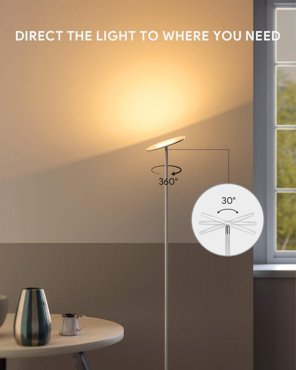Brightech sky led torchiere super bright floor lamp. Hueliv floor lamp is a modern style floor lamp. With more than fifteen color temperature adjustments and over four brightness settings, this lamp would totally amaze you. It provide sufficient amount of light for many places without an overhead ceiling light. Brightech sky led light is one kind of mood and task light.